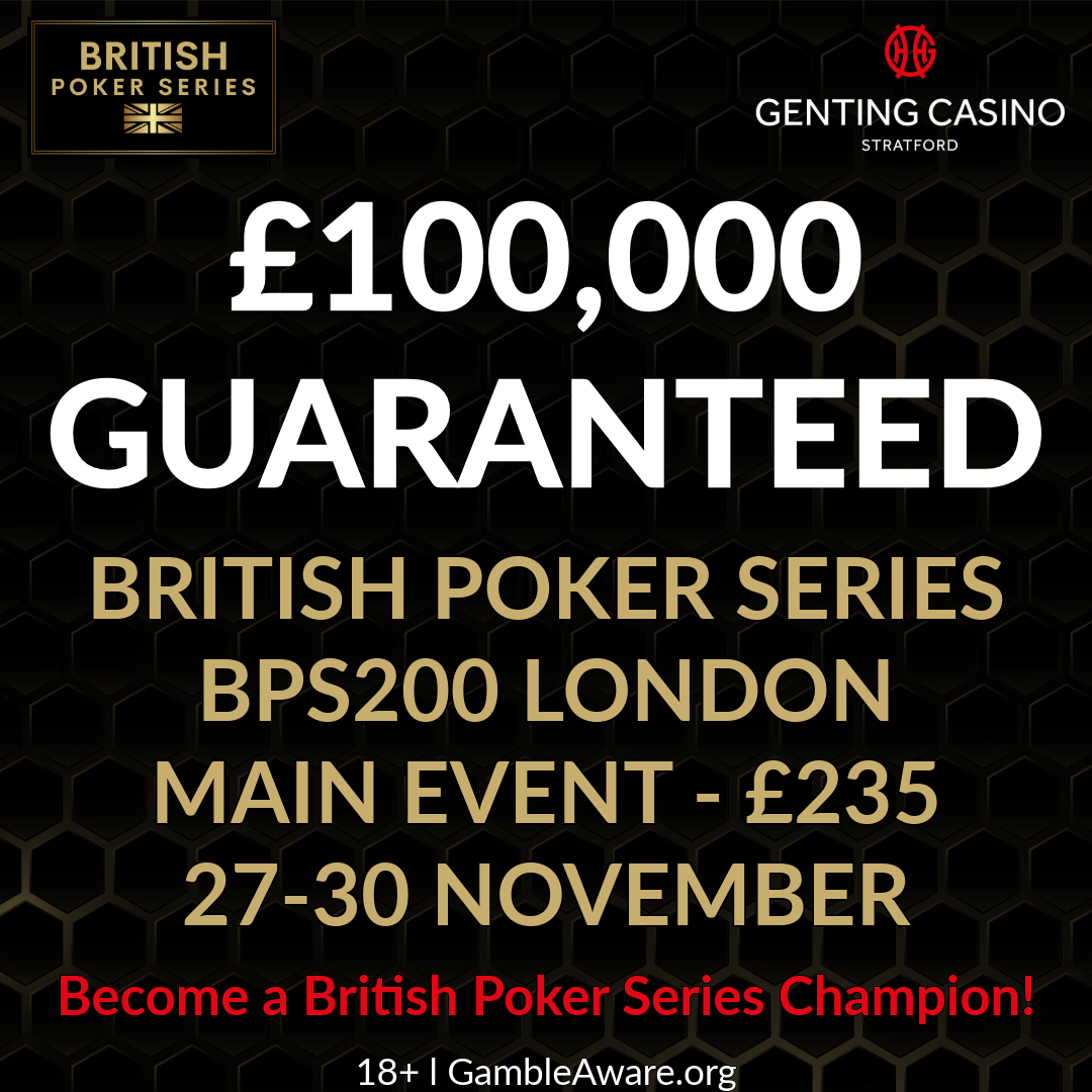 | 1.15pm | M | BPS200 - Day 1 E | £100,000 | £200 | £35 | 25k | 30 | Unl. Re-entry | Level 12 | |